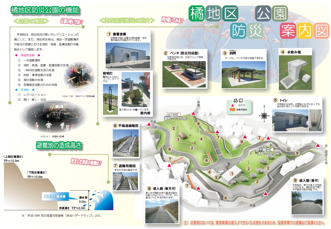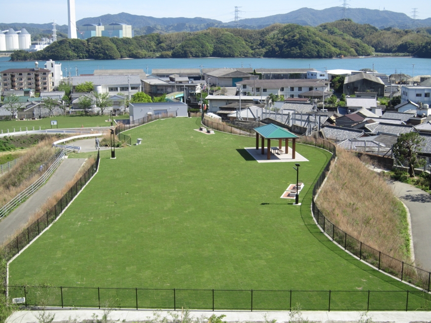 当公園は特定利用斜面保全事業として、崖崩れ対策と津波避難地を兼ねた公園整備として計画しました。
